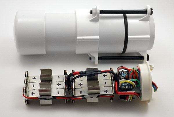 The 2015 prototypes of my DIY underwater Cave Pearl data loggers. This new design uses a minium number of parts, and only has two surfaces that require sanding for the O-ring. This is the extendable version, and the length can be adjusted by lengthening the lower pvc pipe.