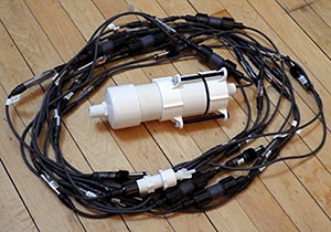 The 2015 prototypes of my DIY underwater Cave Pearl data loggers. This is a photo of a prototype with a temperature sensor chain consisting of 30 sensors.