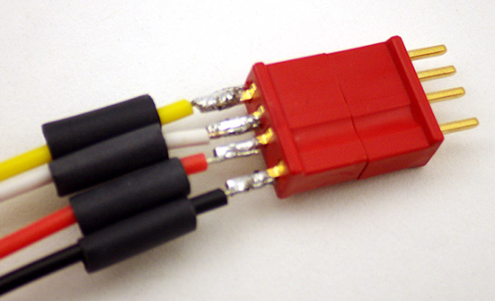 Also note that there is nothing special about the Deans micro plugs I am using here, they are simply my current favorite after testing many others on the market. They stay secure with a good deal of knocking about, but at ~$1.50 per pair they are also pretty expensive, so feel free to substitute different connectors for your build. Dupont crimp connectors are much cheaper, and I used those successfully for quite a while before switching over to the Deans.
