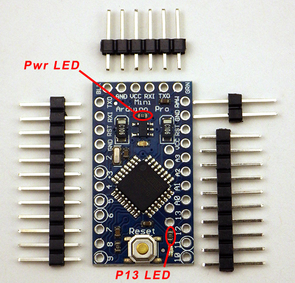 Note: This would be a good time to test whether the Arduino is working. Connect the pro-mini to a PC via a 3.3volt UART adapter and make sure that the ProMini board is selected in the IDE (Tools > Board > Pro or ProMini). You may have to specify the com port that your computer has given to the UART adapter (Tools > Port) and/or you may have to download a driver to support your serial communications board.
