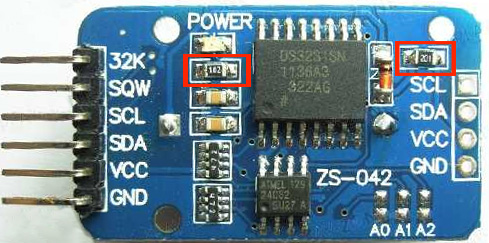 - Red at pad5 (with pullup resistor), this will connect to the RTC VCC pin