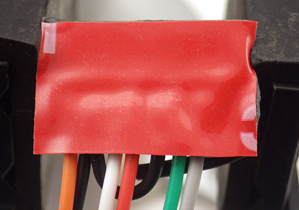 10. After applying heat shrink tubing to the joints (optional), apply double sided tape to the bottom of the Arduino, in two layers. Cut the first layer so that it fits in between the stumps of the riser pins on the bottom of the board. Peel back the plastic backing on that first layer and apply a second layer of double sided tape that extends to the outer edges of the promini board.