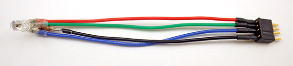 3. Cut 4” lengths of Red, Green, Blue, and Black wire. Solder them to the respective LED connections and use shrink wrap to protect the joins. Carefully bend the leads to a 90 degree angle to facilitate mounting in the housing cap later.