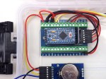 Adding header pins to the RTC module’s cascade port provides a more convenient attachment point for I2C sensors, and removing the breadboard leaves room for a desiccant pack: