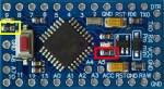 Here a jumper wire from the Promini pins is by-passing a bad connection. This is also how you would break out A6 & A7 connections if you need them.