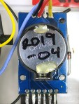 Optional: After removing the two SMD resistors on the module, you can clip the Vcc leg on the RTC chip which forces the clock to run entirely from the backup coin-cell battery. This reduces the loggers overall power use by 0.09mA bringing a “no-reg & noRTCvcc” build below 0.1mA when the logger sleeps between sensor readings (this should run for more than 2 years on fresh lithium AA cells) . But the risk is that if you bump the RTC backup battery loose, that disconnection resets the clock time to Jan 1st, 2000. (note: while the time stamps will be wrong after that kind of reset, the logger will continue running after the next hour/min alignment occurs with the ‘old’ alarm time) A couple of pieces of soft 1.6mm heat