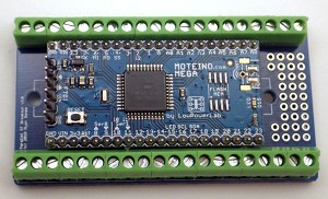 ![]() The Moteno MEGA from ‘just fits’ between the rails on the Raspberry Pi adapter. The ProMini XL fits on a Nano shield – but I like having all those extra I/O pins on the MEGA to play with. |