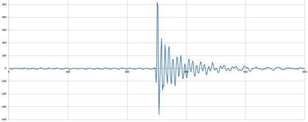 Once the sensor is set in motion, even tiny interferences from the mains will reinforce each other before the system settles again. Even if I use internal timing control to synchronize the readings with a whole number multiple of the mains, it looks like I still won’t be able to use the ‘before’ data to fully correct the ‘after’ effects. This might be specific to way piezo sensor’s resonate, but I’ve got some homework to characterize the effect before we start building a student lab with this module.