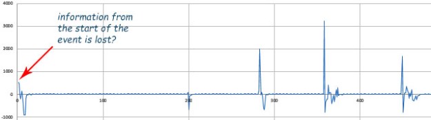 That’s a classic ‘mains hum’ problem. Annoying, but from a research perspective the loss of information from the start of the event was is a more of an issue: What happens if we only get one chance to record our event?