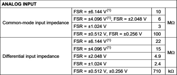 The low input impedance of the ADS1115 can prevent you from using the higher gain settings in differential mode unless you add an opamp/buffer to prevent the ADC from putting to much drain on the sensors output. This is really what separates the ADS from ‘Instrumentation quality ‘ components which generally have much higher input impedances.