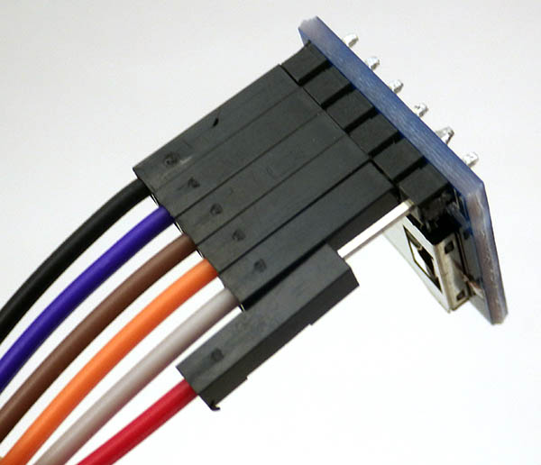 2020_SDmoduleWires_1_600pixw ← Previous Next → Pull single wires from the dupont cable and add them to each header pin on the SD module