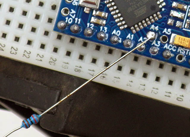 Cave Pearl data loggers ← Previous Next → Bridge the two I2C bus connections for side access with the leg of a resistor. Connect A4->A2 & A5->A3.