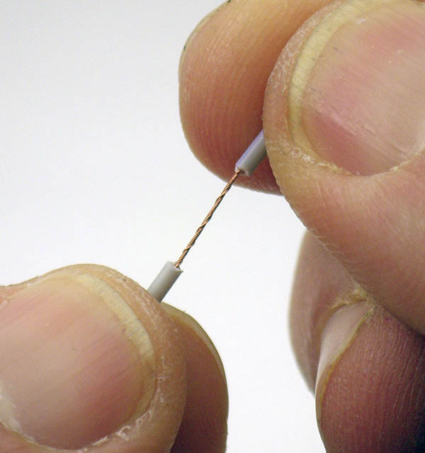 Cave Pearl data loggers ← Previous Next → Gently ‘pull and twist’ the cut insulation away from the wire to bind the thin strands together.