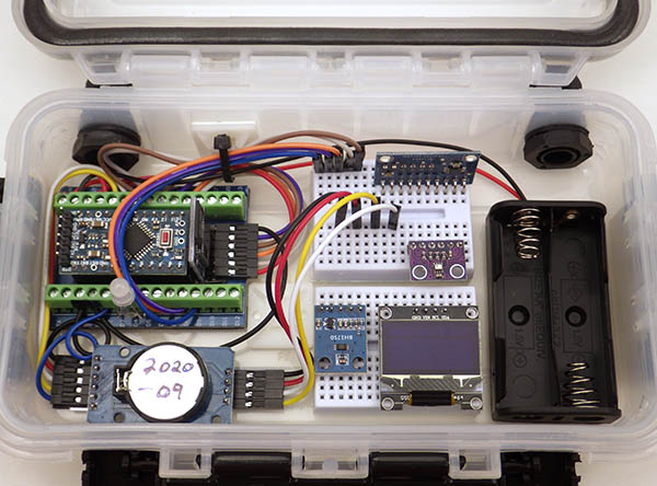 Cave Pearl data loggers ← Previous Next → The completed layout with plenty room for sensor modules, display screens, etc.