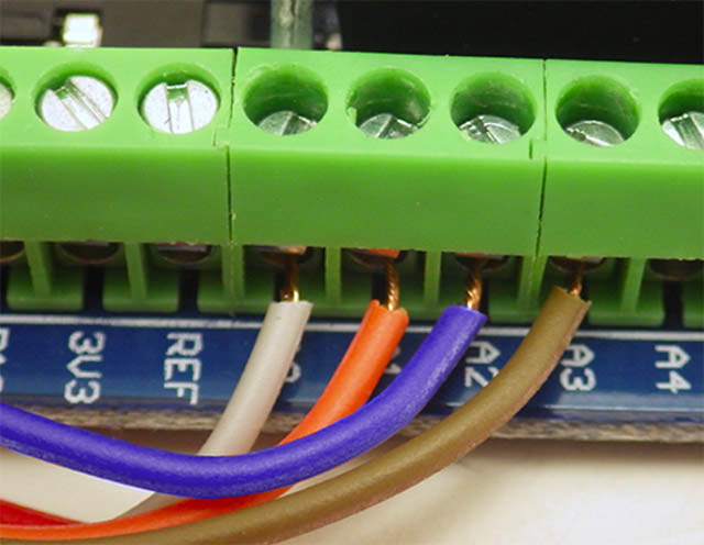 Cave Pearl data loggers ← Previous Next → SD Connection pattern: Grey (CS) to ProMini D10, Orange (MOSI) -> pm D11, Purple (MISO) ->pm D12, Brown (CLK) -> pm D13 (NOTE the shield labels say A0-A3 which do not match the D10-13 pattern of the Pro Mini pins)