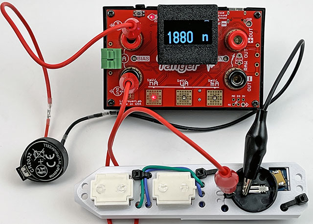 Sleep current is more of a diagnostic tool than a requirement: you can usually run a course without measuring these currents by simply running the loggers for a week between labs while recording the battery voltage. If that graph falls slowly to a plateau near 3.05v and then stays there for a long time – your logger is probably sleeping at the expected 3-5µA. However, if you can measure the sleep you add exercises to estimate logger run time with online battery life calculators like the one from Oregon Embedded. Order a box of 200 cheap coin cell batteries before running a course, because if a student accidentally leaves a logger running blink it will drain a battery flat in a couple of hours. This will happen regularly.