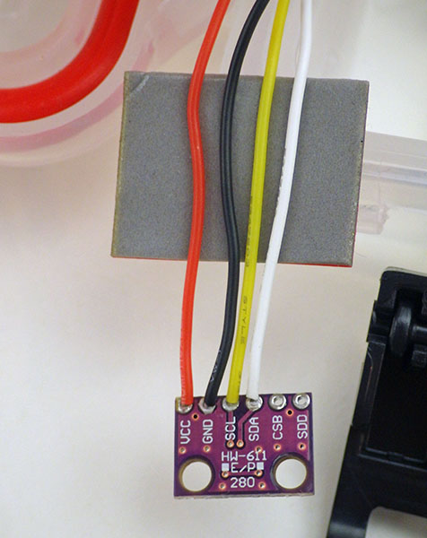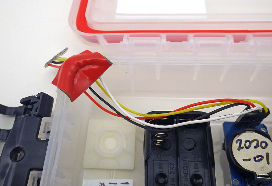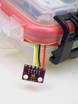 In our case the sensor will be under 1.5mm of HDPE and another millimeter of double sided foam tape. So the default sensitivity level is almost perfect for sensing through the lid of the housing. With the LED disabled the TTP223 module pulls about 5μA when NOT being triggered, and 100μA when actively signaling the logger. Here I’ve connected the switch using 10cm pre-made jumpers but you want to be careful that you don’t put the switch in a position on the lid where it might cast a shadow over any light sensors as the sun moves through the sky. With our most recent student logger, you also need to shift the indicator led over to R4-GND5-Gr6-Bl7 so that the switch output (orange wire) can be fed into the hardware interrupt on D3. This chip produces ‘clean’ transitions so you don’t need to worry about de-bouncing. These switches seem to work fine without pullup, but I’ve been enabling the internal pull on D3 anyway.