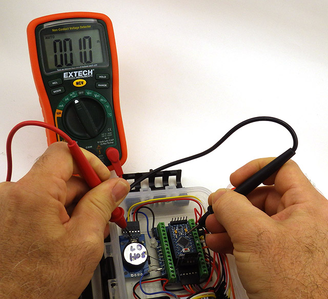 In addition to preventing the display from using power when nobody is around, having the ability to trigger the display ‘at any time’ is a great way to make sure the logger is OK without opening it – especially if all you want to see is the most recent timestamp & battery level. This is also helpful when students are running labs that can’t be ‘physically disturbed’ ( for example, soil sensors tend to produce significant discontinuities if they get bumped in the middle of a run) Nothing is worse than letting an experiment run for a week, only to find that the system froze up a few hours after it was started.
