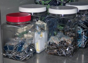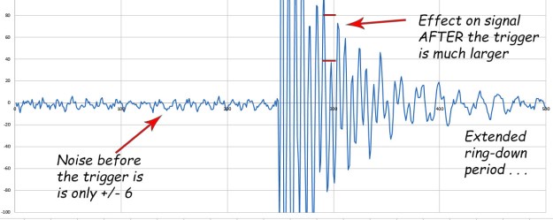 The code above tweaks our standard discharge method (on GitHub)with port commands & PIND when things need to happen as fast as possible, but also uses slower digitalWrite/pinMode commands in places where you want to spend more time ( in the pre-read channel discharge steps ). The power register lowers current draw during SLEEP_MODE_IDLE, but power_all_disable(); also shuts down Timer0, so those pesky 1msec overflows don’t disturb the count. Waking from SLEEP_IDLE adds a constant offset of about 8 clock cycles , but it reduces the jitter you’d normally see with the CPU running. One or two clock cycles of jitter is normally unavoidable with a running processor because you can’t respond to an interrupt flag in the middle of an instruction. Interrupts are also blocked when you are processing some otherinterrupt, so if the AVR is dealing with a timer0 overflow – the LED triggered pin change would have to wait in line.