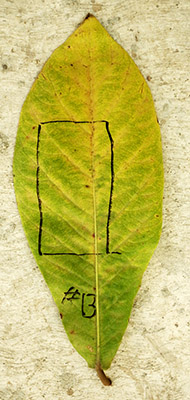 All leaves were ‘fresh-picked’ from the tree, and the percent transmission numbers were averaged from five readings taken one minute apart. Natural light is notoriously variable, so most index sensors use considerably more sample averaging than that.