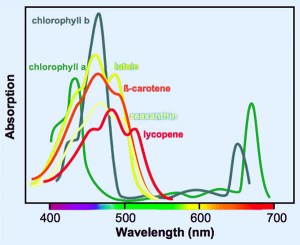 While #14 and #15look different they were taken from same plant, and the yellow-brown spots on #15 make it clear the plant was under some kind of stress. Visually,I would not have been able to distinguish leaf #14 from #16but the index identified #14 as being from an “unhealthy” plant. Given the relatively wide spectrum we are working with here, this is a remarkable result – suggesting that with a bit of homework to find LED’s with tighter detection bands, we could produce an inexpensive chlorophyll meter (like theSPAD?) or we could tune the idea for other pigments/applications. It should be possible to at least match the performance of the leaf color chartscurrently being used to assess when fertilizer is needed. Using a white LED emitter above the leaf could enable a variant of our simple approach that was not dependent on the sun, and adding couple of reads using only green & red emitters above the leaf would enable us to distinguish which side of that wide detection curve we were on. Commercial chlorophyll meters sometimes use emitters at 660 nm & 940 nm , measuring both reflectance AND transmission so an accurate absorbance value can be calculated. Even then plants cease to create chlorophyll once a certain threshold has been reached, so these meters are often used to detect deficiencies (by comparison to a well fertilized control group) rather than concentrations.