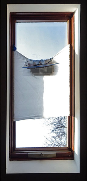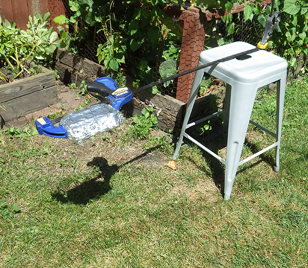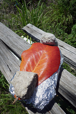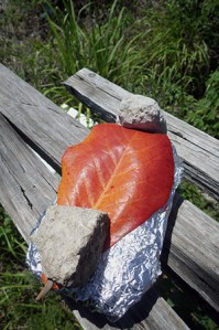 (click to enlarge) Leaves cover the input window, secured to prevent wind shifting.
