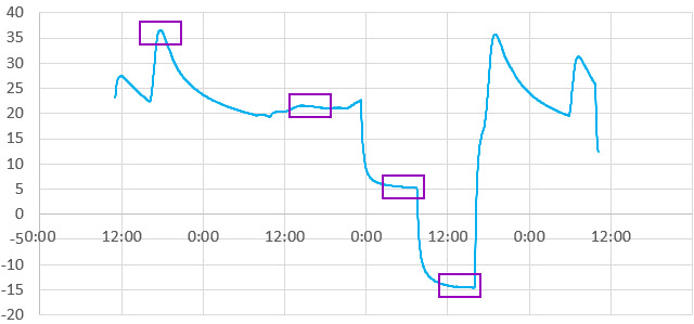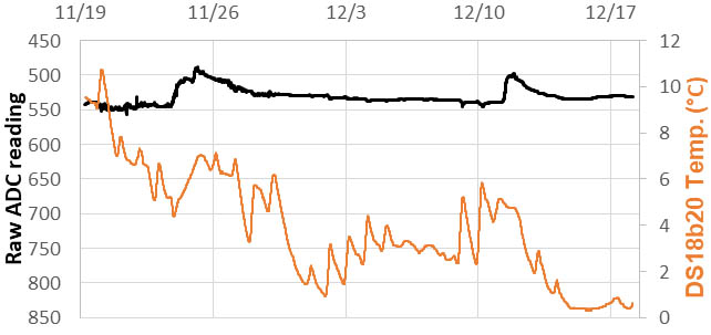 Cloud induced variations could be compensated by putting two sets of sensors on the logger (one pointing up & one pointing down) for simultaneous correction of direct insolation vs surface reflectance, but for now this is just a prototype trial to see if a decent ‘lab exercise’ can be developed for the Cave Pearl Loggers with minimal additions to the basic build.