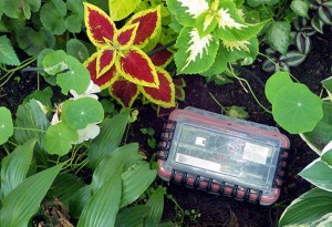 With all the rough assumptions up to this point I was surprised to find the reflectance readings falling within the broad range of ‘textbook’ values. A reading 1m above a relatively healthy section of my lawn produced an index of 0.39 while a reading above a mangy half-dead section (photo: right) produced a much lower index value around 0.215 A patch of bare dirt read at 0.044, and my gravel driveway produced an index of -0.13 The front flower garden produced a reading of 0.292 It’s hard to know how representative this is given the wide range of values listed for different plant species in the various spectral libraries.