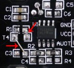 // and the required ISR’s ISR (TIMER1_OVF_vect) { timer1overflowCount++; if(timer1overflowCount>10000){ // this low light limiter must be <65534 DDRD |= (_BV(LED_GROUND_PIN)); // sets our gnd/D5 pin to output (is already LOW) // Bringing D5 low breaks out of the main do-while loop TCCR1B = 0; // STOPs timer1 //CS12-CS11-CS10 = 0-0-0 = clock source is removed } }