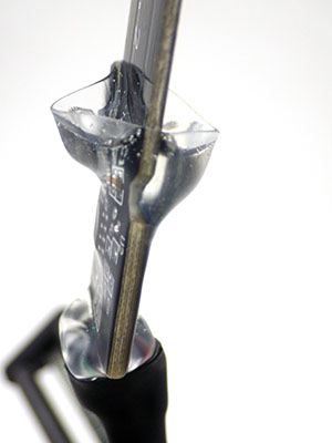 Even with a filter and heat shrink tubing the IR LED was easily saturated, and it took 28 layers of plumbers tape to bring readings from the IR LED into approximately the same range as the RGB readings (which had only 1 layer of diffusing PTFE tape on it) This was done with the logger tethered a laptop, displaying readings in the serial monitor window. I simply added one layer at a time until the readings under direct full sunshine for both the IR & Red channel were in the 300 to 500 range (using our logger code from Github). Then I add some heat shrink to hold those layers of teflon tape in place, leaving only the round dome of the LED(s) exposed.