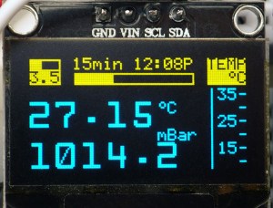 // you can also package these up into a stand-alone function (see below) oled.clear(); // erases anything displayed on the screen oled.setCursor(0,2); // (0-127pixel columns,0-7text rows) oled.set1X(); // set single-row font height for labels oled.print(F(“B280 T”)); // standard .print syntax supported oled.setCursor(46,2); // move cursor to column 46, but remain in same row oled.set2X(); // set double-row font height for readability oled.print(bmp280_temp,2); // a float variable, limited to two decimal places oled.set1X(); oled.print(F(“o”)); // a lower case ‘o’ for the degree symbol oled.set2X(); oled.print(F(“C”)); // … etc ... add more here until the display is ‘full’
