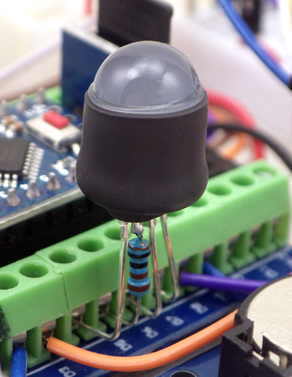 IR obstacle avoidance modules are one inexpensive source of IR LEDs. These sensors are somewhat limited when used for their intended purpose, but a little cut & paste lets you merge the emitter LED with a daylight filter ‘cap’ cut from the photo-transistor on the same board:
