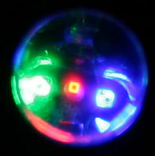 This non-diffused pattern is predicted by Figure 10 in the Broadcom datasheet, with the tight dispersion angle of lens producing a strong central ‘hot spot’. The overall pattern is inverted relative to the 5050 (which is primarily just the metal reflector cup) although the effect of the lens is much stronger. Adding small glass particles to the epoxy will diffuse the light, reducing the ‘focusing power’ of that lens: