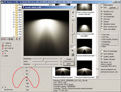 IESviewerfeatures a rendering tool that can be used to show the spread & intensity of light emitted using photometric files from the manufacturer.