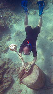 After seeing that plot I went back to the idea of building a geodesic frame big enough to contain the whole flow sensor, that could be assembled with zip-ties for transport into the field. And I think I found a way to build one out of tubing, but in the end I simply fashioned a couple of handles that could be connected directly to the threaded ends of my underwater housing. A sliding joint on the top handle allowed me to spin the unit slowly and smoothly as I pivot my body into different positions. The whole process takes about 10 – 15 minutes, using my arms as the calibration jig. This produces a spread of points that look like the blue line plot below: