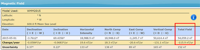 To use his method with a different magnetometer, you would have to dig into the datasheets, and replace the (100000.0/1100.0) scaling factors with values that convert your specific sensors output into nanoTesla. On the LM303, that factor is different on the Z axis than it is on the X & Y axes. But according to the author on the Sailboat Instruments site you only need to match the total field “norm” values if you want the final output on an absolute scale:
