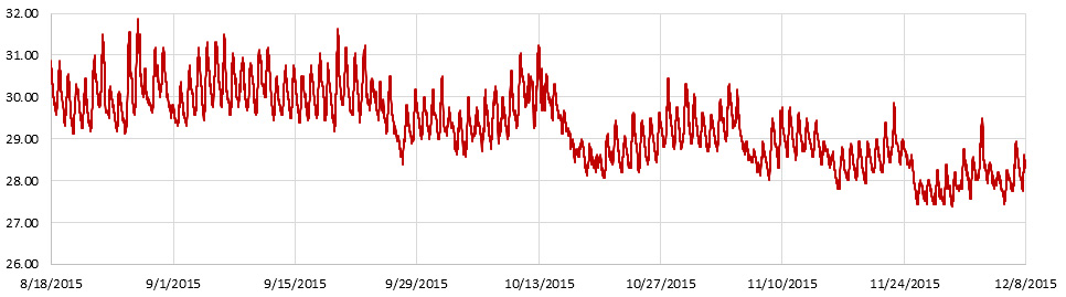 When I started building a flow sensor based on the drag/tilt principle, I knew that leaving sensors on their default factory calibration settings was not optimal, but I had so many other things to sort out regarding power use, memory handling, etc., that I left calibration to deal with later. Since I could not trust the electronic compass in the units, I simply installed the Pearls with a magnetic compass in my hand, making sure I knew which accelerometer axis was physically aligned North. But once my loggers started consistently reaching a year of operation, that “later” finally arrived. I tackled the topic of calibration with little knowledge beforehand, and there was quite a bit of background material to wade through. Rather than waffle on about it I am simply going to provide links here to some of the better references I came across: