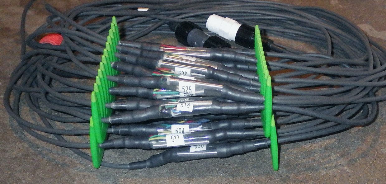 The second prototype with 30 DS18b20 sensor nodes distributed over 12 m of cable with 7 inter connections