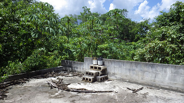 This gauge was still recording well after 9 months of accumulation because of the larger elevated surface in the drain screen.A typical climate station from one of our projects. Two rain gauges for redundancy, firmly bolted to the cement block. Other sensors in the set are protected from UV & flying debris inside the stack of blocks. We do our best to find a rooftop unobstructed by taller trees, but sometimes you have to take what you can get. Perhaps the most important criterion is that the station must not be visible, as ‘tall monkeys’ will always be the biggest threat to your data in remote locations.