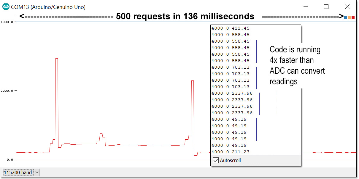 And finally, a classroom lab could combine this kind of index-based characterization with paper chromatography to verify the pigments in the leaves via their Rf factors. A more advanced approach would do this quantitatively, turning this index into a true diagnostic tool. This could also be a good accompaniment to the many other Arduino based plant monitoring projects, as a growth or health verification stage. In northern climates this could even be done with house plants by taking readings ‘before’ and ‘after’ some experimental intervention. With those large temporal separations, you would want to take new max/min readings each time for the scaling & avoid using artificial light sources as these introduce frequency artifacts that could interfere with the index.