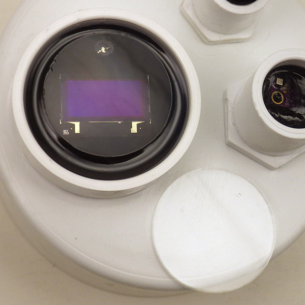 Even with a filter and heat shrink tubing the IR LED was easily saturated, and it took 28 layers of plumbers tape to bring readings from the IR LED into approximately the same range as the RGB readings (which had only 1 layer of diffusing PTFE tape on it) This was done with the logger tethered a laptop, displaying readings in the serial monitor window. I simply added one layer at a time until the readings under direct full sunshine for both the IR & Red channel were in the 300 to 500 range (using our logger code from Github). Then I add some heat shrink to hold those layers of teflon tape in place, leaving only the round dome of the LED(s) exposed.