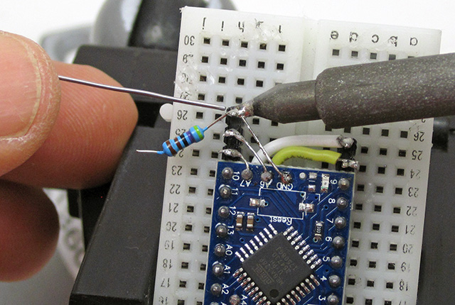 Don’t forget to measure the values of the resistors before soldering that voltage divider. You will need those values to calculate the battery voltage based on the ADC readings from pin A6.