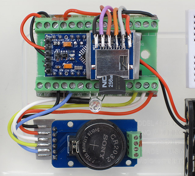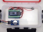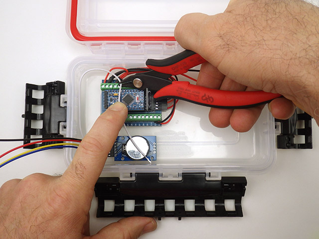 Here drops of hot glue secure the RTC coin cell battery against accidental resets. It’s worth noting that even with this precaution, we still see 1-2 units out of 10 loose their time when they have to be transported in airline luggage.