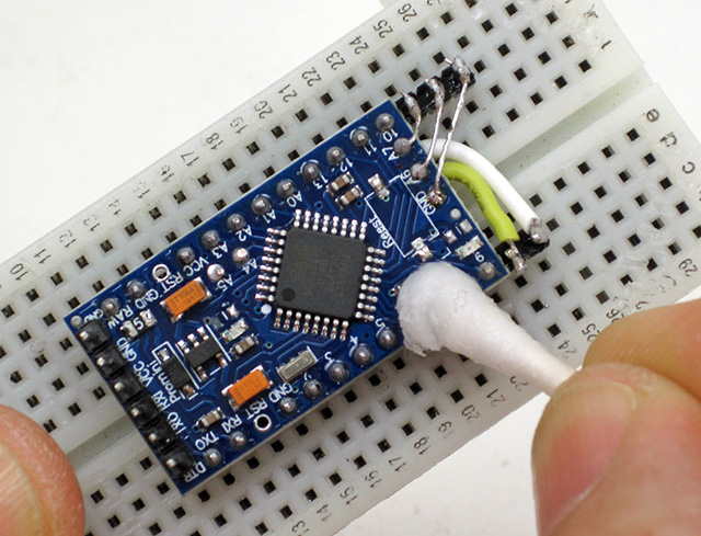 Testing is the only way to find out if your sensors can handle the variation, and if you don’t have time for that it might be worth keeping that voltage regulator on board despite the reduced lifespan. For field units, I usually replace the MIC5205 with a more efficient MCP1700 regulator because I want all the data consistency I can get. Another thing to keep in mind when you are hoping for a really low-power build is leakage currents through leftover flux – it’s always worth the time to get your parts squeaky-clean during construction.