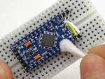2) Then connect the positive wire from a 2X LITHIUM AA battery pack directly to the Vcc rail on the Pro Mini