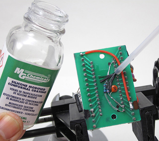 Always apply conformal coating in a well ventilated space, such as a fume hood.