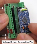 Divider runs between GND & RAW Vin, with output to A6 pin.