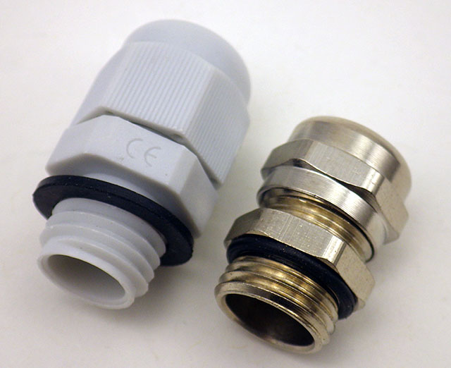 You may need two washers due to the curvature of the box. The cable gland shown above is an M12 x 1.5 IP68 for 3-6mm dia. cables (also desc. as PG7 12mm)