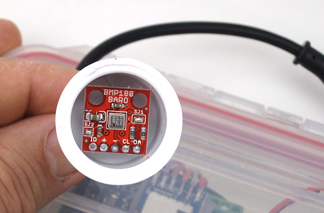 It’s worth mentioning the breadboard contacts are notoriously sensitive to vibration, etc. Once your testing stage is complete, and your prototype is working as it should, bring those sensor wires directly over to the screw terminal connections for a more secure connection. Also remember to put protective tape over any sensor ports that need to remain open before potting those sensor boards in epoxy. Otherwise you might clog the sensor by accidentally letting a drop fall into it.