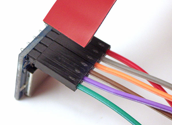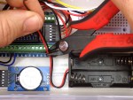 Using double sided tape to hold the parts inside the housing (rather than traditional stand-offs) makes this stage of the build remarkably quick. Adding male Dupont pins allows you to join internal and external wires via the breadboard. Be sure to use wires that are long enough to reach the mini breadboard.